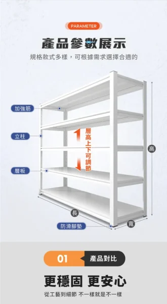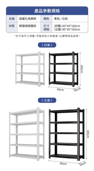 好氣氛家居加厚承重可調高度置物五層架(兩色可選)-90*50*183 cm