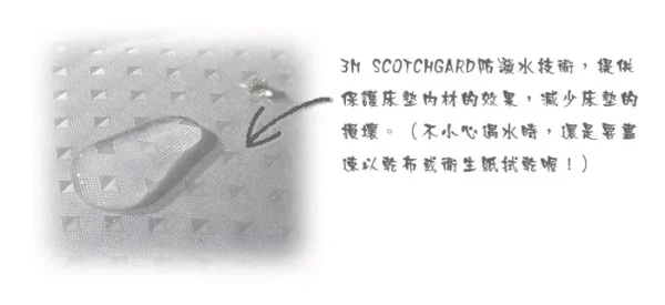 | 第1層 | 3M防潑水緹花布-提供表面更好的保護 |