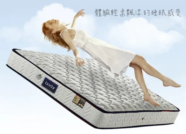 | 第8層 | 高錳碳鋼袋裝獨立筒彈簧-經高溫回火,韌性超強更耐用,多支點蜂巢式排列,讓支撐無空隙,依身體各部力學的不同給予適當撐托,並減少起臥翻身時的干擾 |