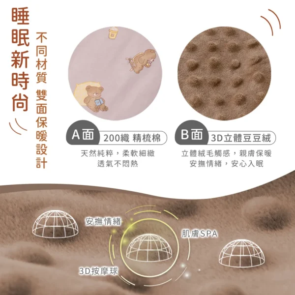 • 3D立體豆豆絨,安撫療癒 ▪ 80/20 保暖的完美比例