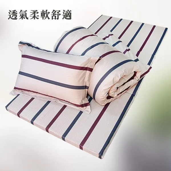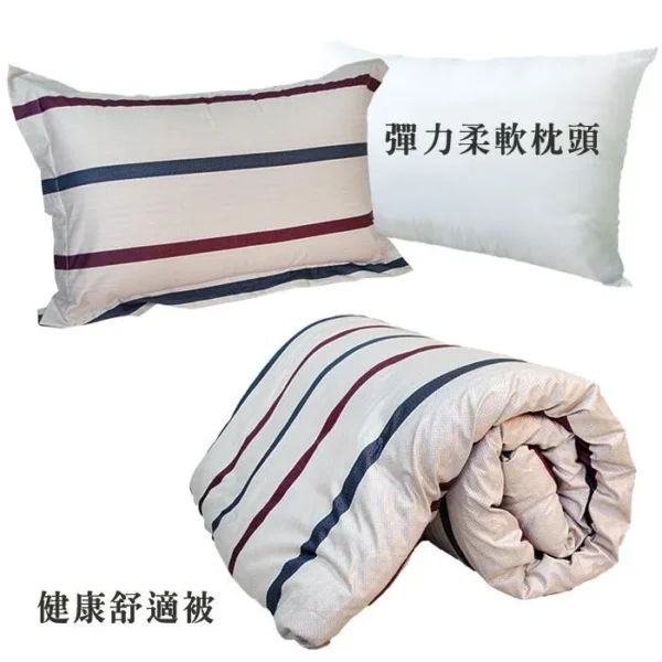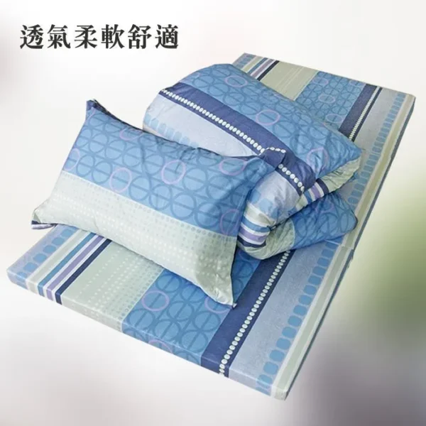 ★材質: 表布─100%純棉 填充物(被˙枕)─100%聚酯纖維 填充物(床墊)─100%聚氨酯(惰性記憶棉) ★特色: ˙學生宿舍、單身貴族、客房、和室房、民宿皆適用 ˙透氣舒適,睡感超優 ˙攜帶方便,不占空間小坪數的最佳選擇 ˙台灣製造 品質保證 ★產地:台灣 ★內容件數與尺寸:六件組 床墊x1件 (純棉布套*1)_3x6尺 (90x180cm) 枕頭x1件 (純棉布套*1) 健康舒適被x1件 (純棉布套*1)-5*7尺(150*210cm) ★光胎清潔保養: 不可水洗╱不可乾洗╱不可漂白╱陰涼處平放乾燥╱不可熨燙 ★布套清潔保養:可水洗╱可乾洗╱不可漂白╱不可烘乾╱可熨燙
