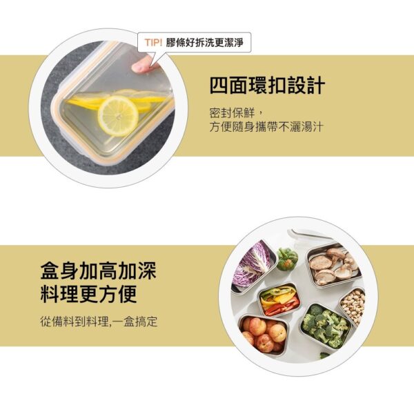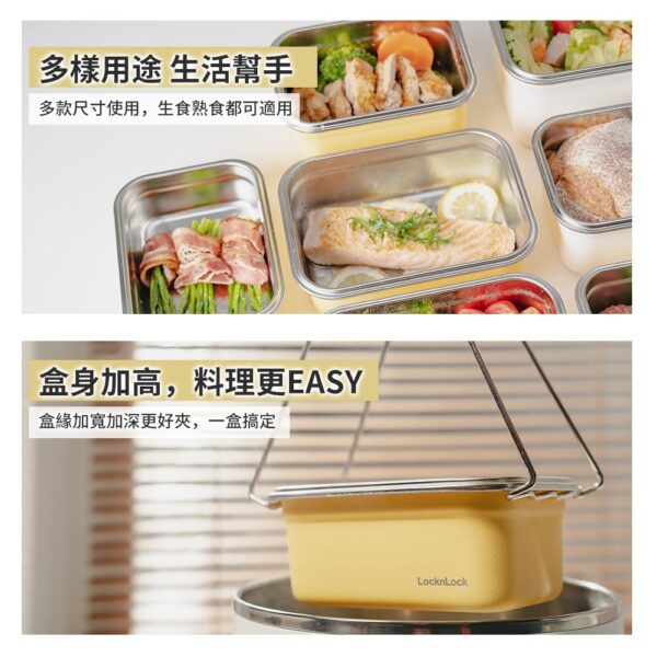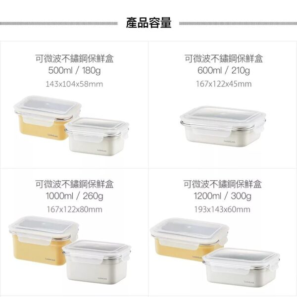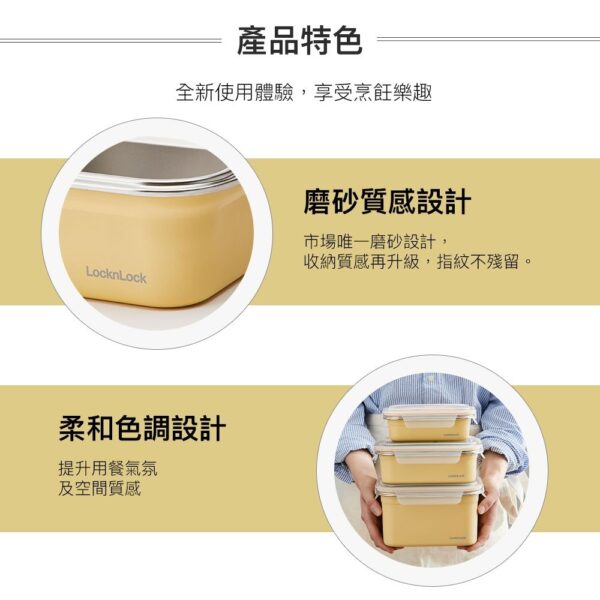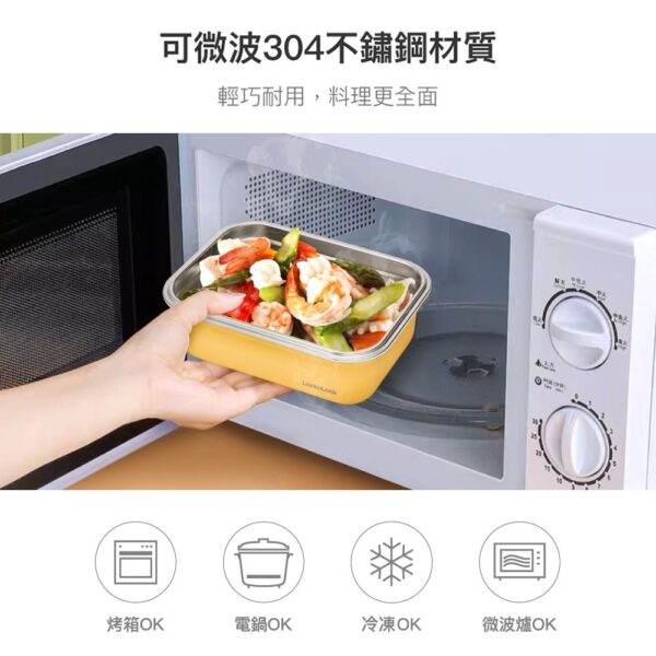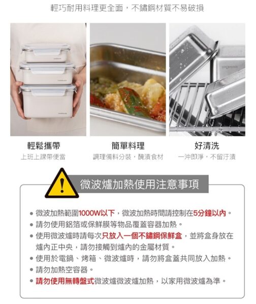 ■容量:600ml、1000ml ■材質: 盒身-304不鏽鋼 上蓋-PP:-20℃~100℃ 密封條-矽膠:-20℃~200℃ ■產地:中國 樂扣樂扣可微波輕漾粉彩不鏽鋼保鮮盒,為台灣特殊開發的塗層,符合台灣消費者使用習慣,與中國及韓國規格之塗層不同,若使用非官方授權通路售出的保鮮盒而產生的商品問題,將不在服務範圍內。 【使用注意】 用途: 儲物保鮮及烹飪料理、簡易微波加熱料理等 保存方式: 清洗後放置於通風處晾乾 使用方法: 可使用於冰箱、電鍋、烤箱及微波爐(低溫加熱)。 注意事項: 使用於電鍋、烤箱、微波爐時,請勿將盒蓋共同放入加熱。請勿用火直接加熱。上蓋遇熱變型係屬正常現象,請安心使用。請勿加熱空容器。冷凍保管時,含豐富水分之固體食物或液體請勿裝滿容器。微波加熱範圍1000W請控制在5分鐘以內。請勿使用鋁箔或保鮮膜等物品覆蓋容器加熱。 使用微波爐時請每次只放入一個不鏽鋼保鮮盒,並將盒身放在爐內正中央,請勿接觸到爐內的金屬材質。請勿使用無轉盤式微波爐加熱。 放入微波爐使用前,請先確認產品沒有凹陷變形。